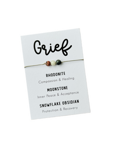 Grief bracelet with Rhodonite, Moonstone & Snowflake Obsidian gemstone beads