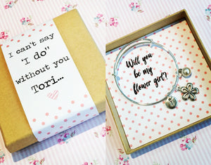 Will you be my flower girl charm bracelet, complete with gift box & personalised sleeve!
