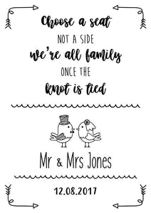 Choose a seat not a side, we're all family once the knot is tied wedding sign print