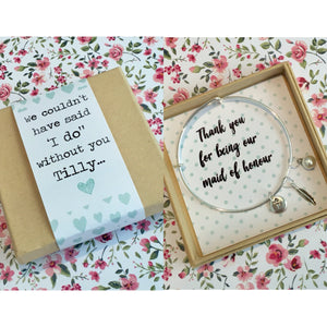 Thank you for being our Maid of Honour charm bangle complete with gift box & personalised sleeve