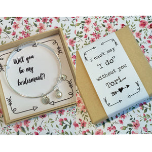 Will you be my Bridesmaid charm bangle complete with gift box & personalised sleeve